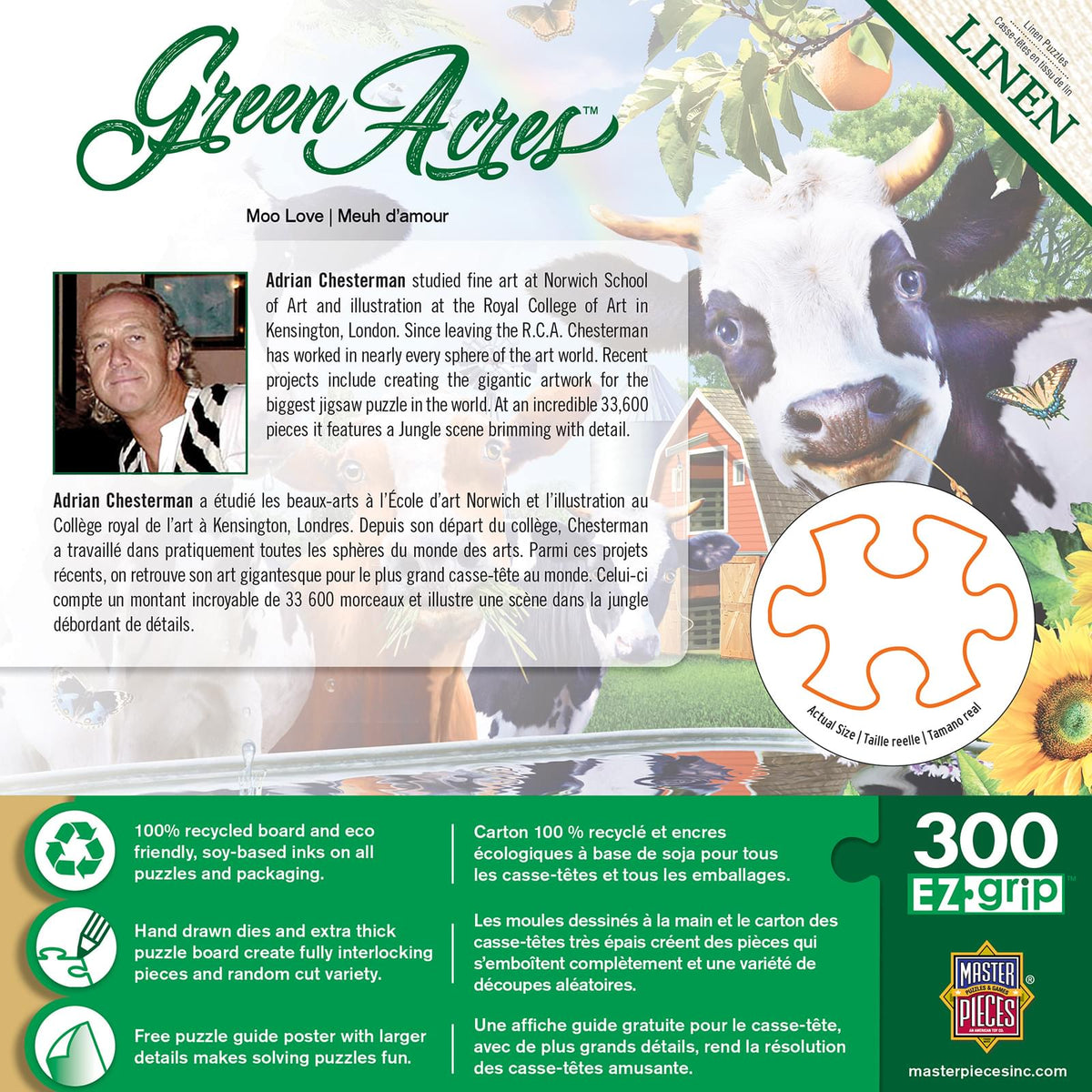 We source puzzles made with precision cutting techniques that ensure perfect piece fit and minimal dust residue. Many of our 300 piece jigsaw puzzles feature EZ Grip technology with large-piece construction, designed for comfortable handling and easier assembly.