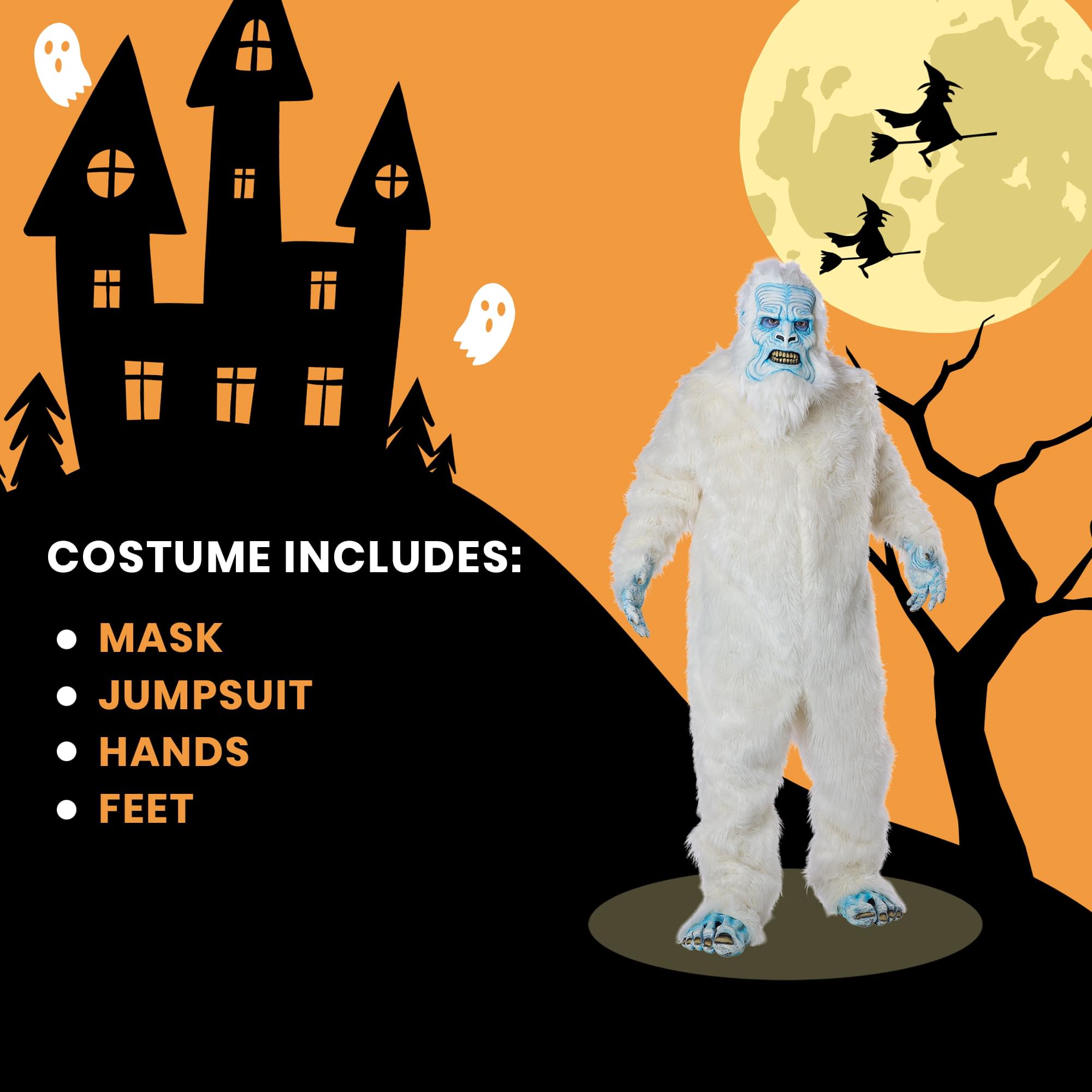- INCLUDES: Mask, Jumpsuit, Hands, and Feet