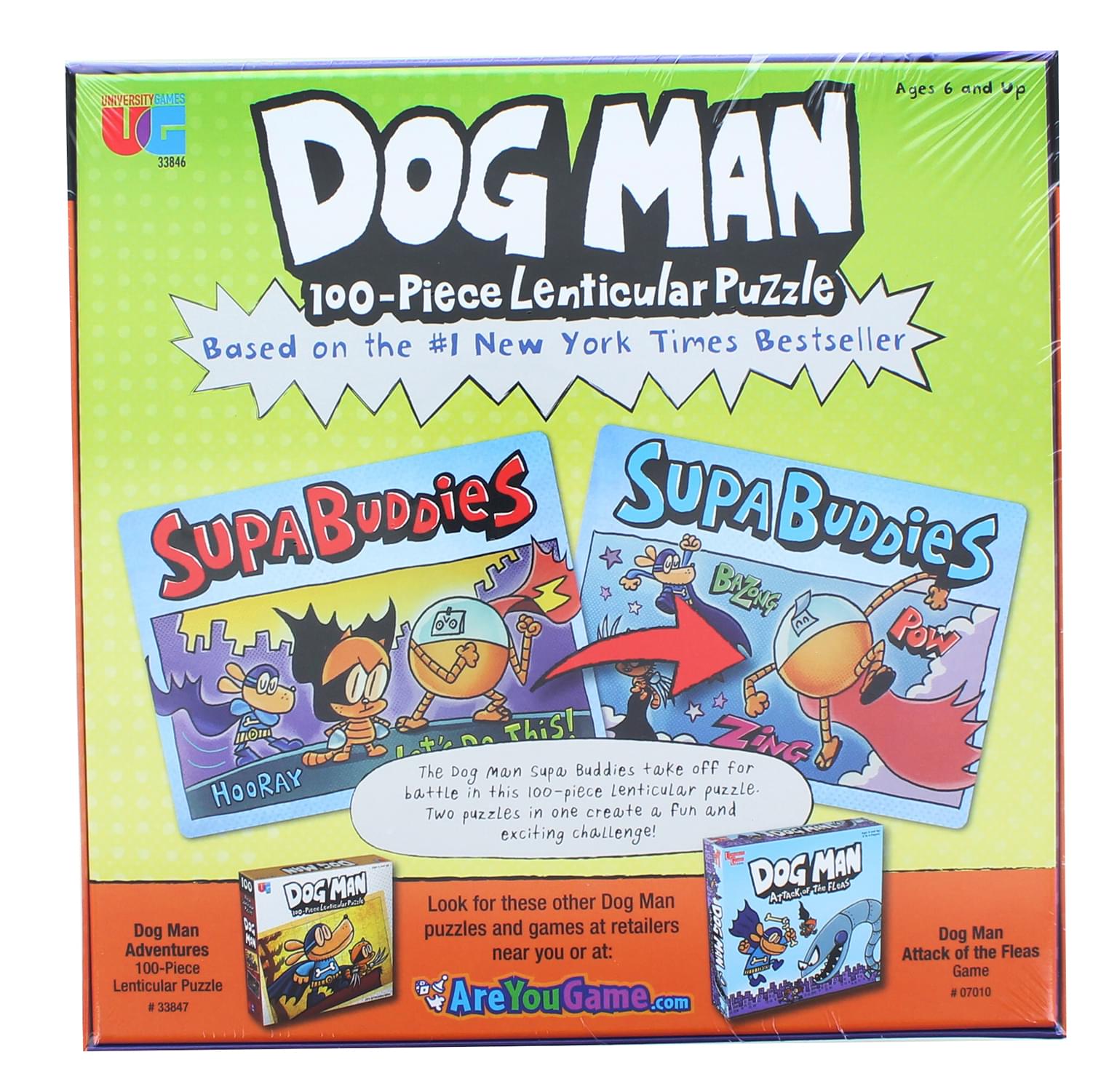 Put your skills to the test with this entertaining lenticular jigsaw puzzle featuring Dog Man! A fun challenge that makes for an amazing display piece once completed. Puzzles are a fun activity to do alone or in a group, and make a great gift for all ages at birthdays and holidays!
