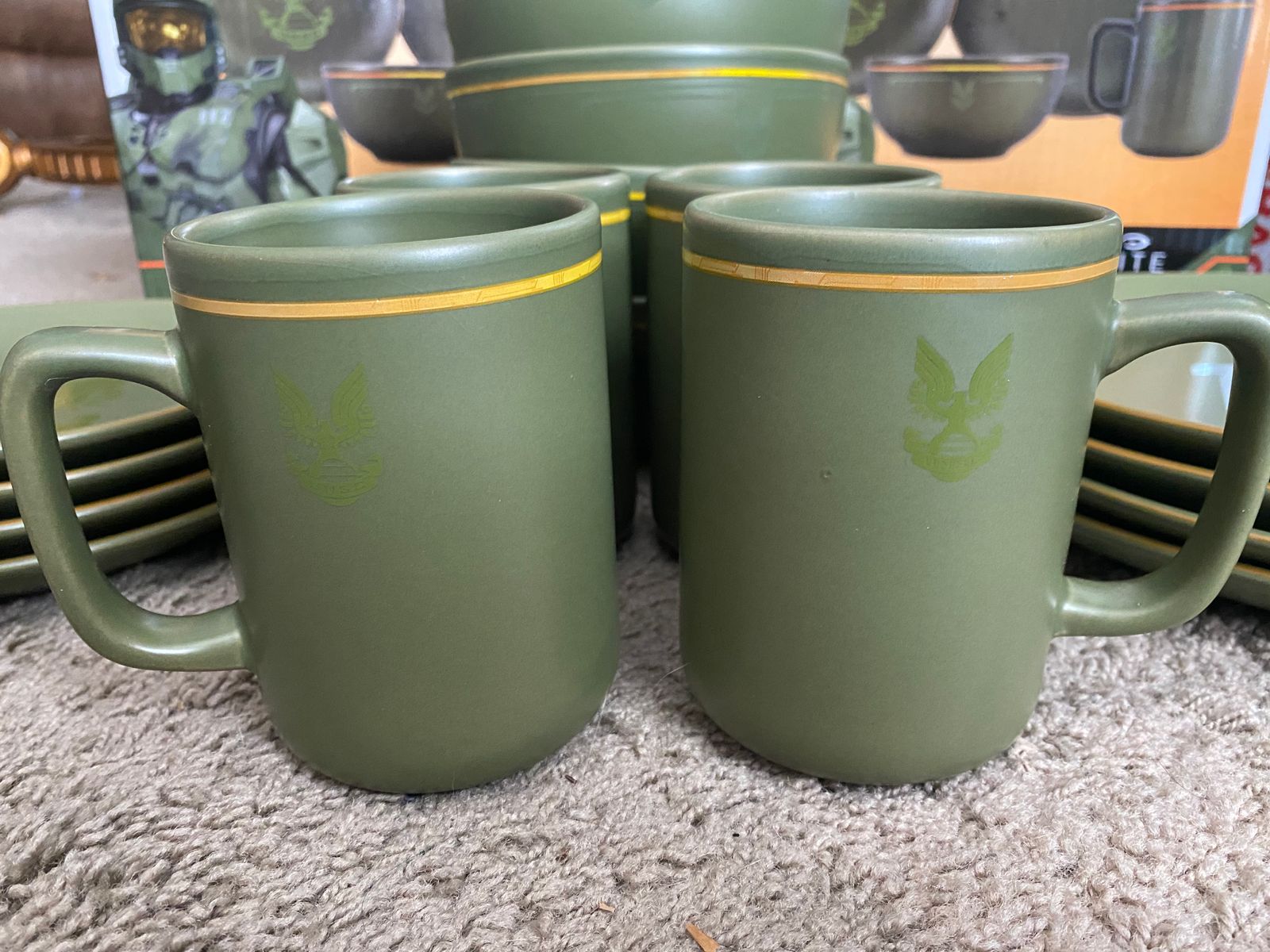 The entire set includes 2 dinner plates, 2 salad plates, 2 soup bowls, and 2 mugs. The two-person place setting will serve you and a companion, so you can take a bite out of those UNSC de-radiated Moa Burgers in style. Fill up on your next meal before preparing for deployment. After all, you should never go into battle on an empty stomach.