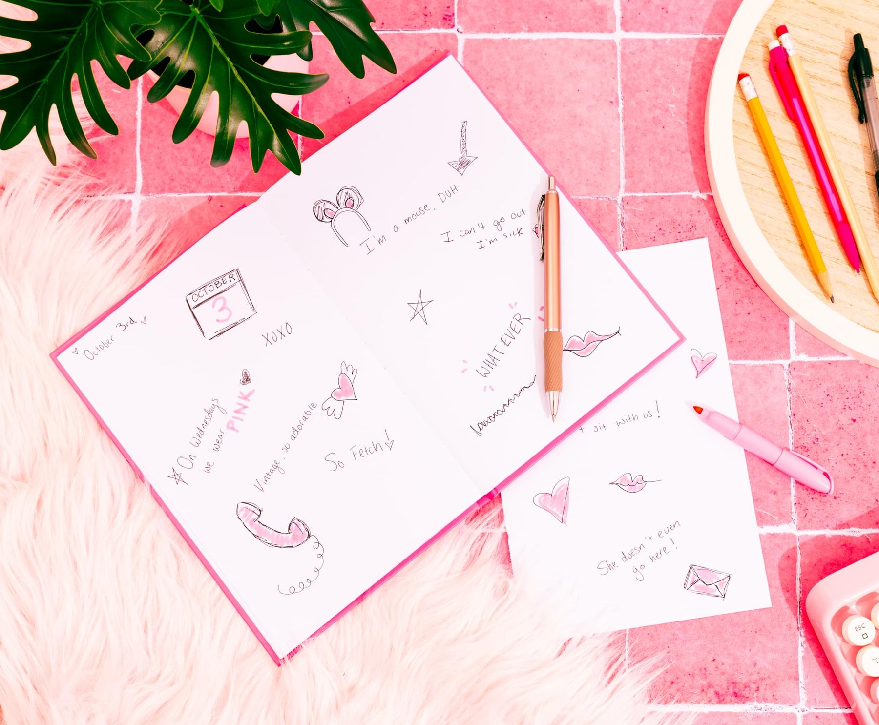 - Compact and Portable: This notebook is easy to slip into a bag or backpack, making it the perfect travel companion. Whether you're in class or lounging around in pink on a Wednesday, this journal reminds you to stay stylish and sassy.