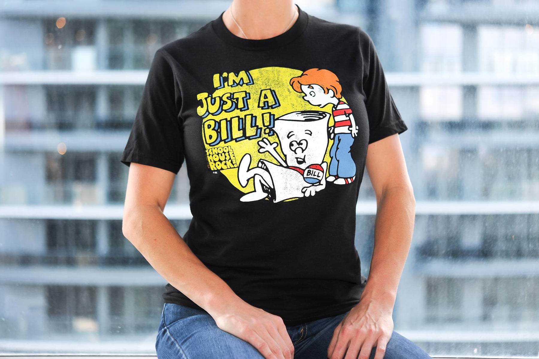 - DYNAMIC DESIGN: Shirt features the unforgettable "I'm Just A Bill" cartoon characters along with the Schoolhouse Rock! logo.