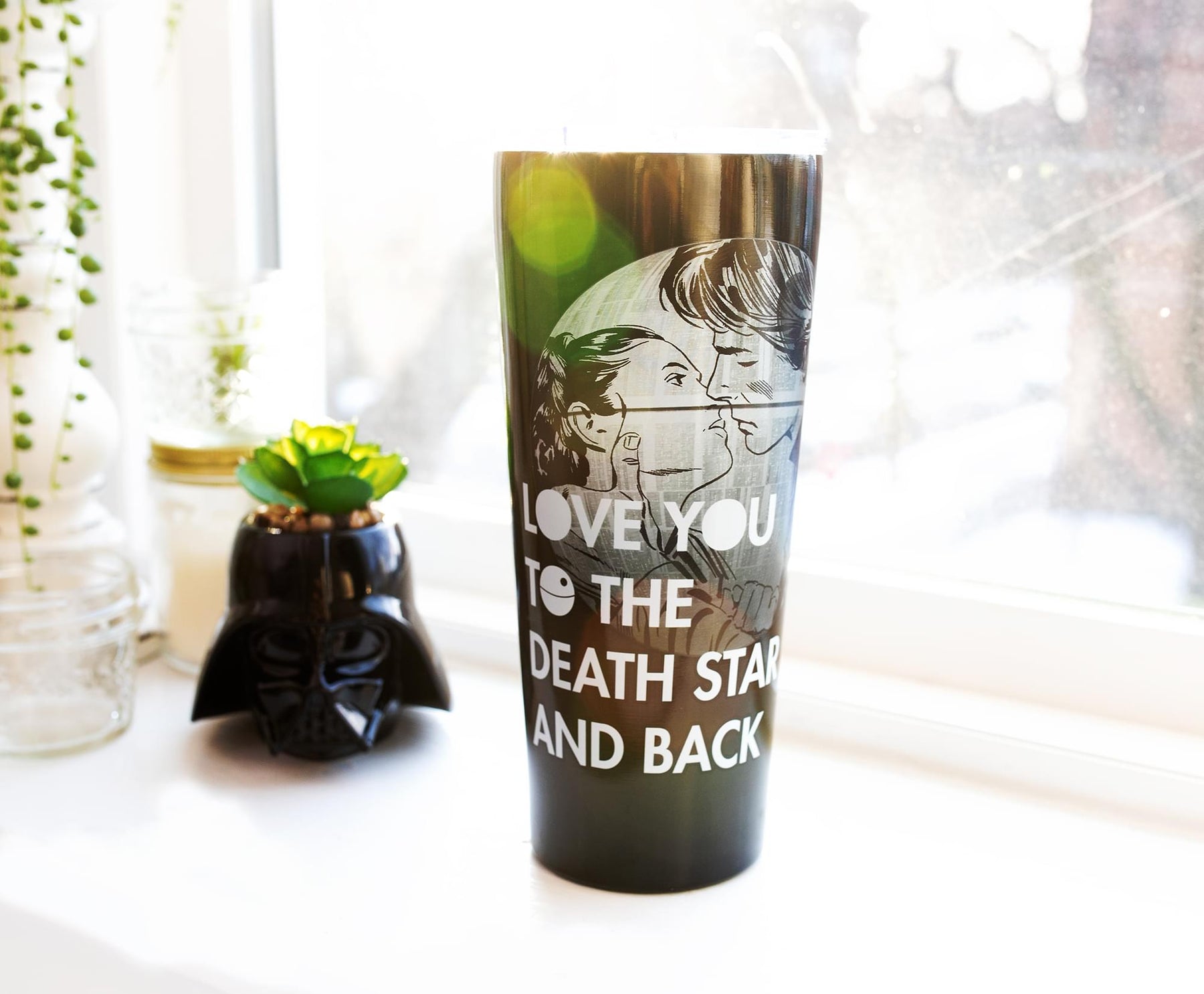 - SHOW SOME LOVE: Relive one of the greatest romances of a generation with this precious travel tumbler. Features Princess Leia and Han Solo, complete with "Love You to the Death Star and Back" lettering.